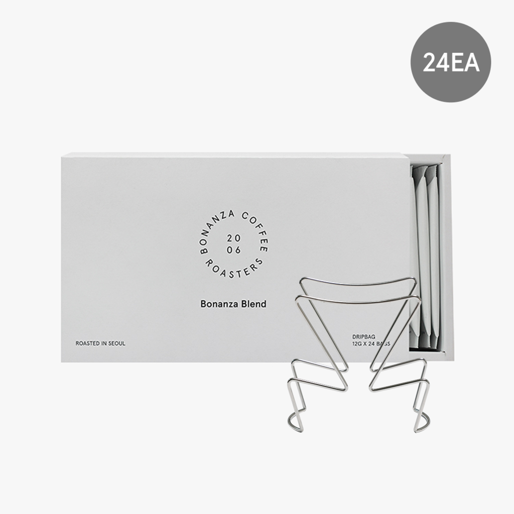 언제든 가볍게 내려 마시기 좋은 보난자 드립백 24개입과 드립 어시스트 세트 구성입니다.