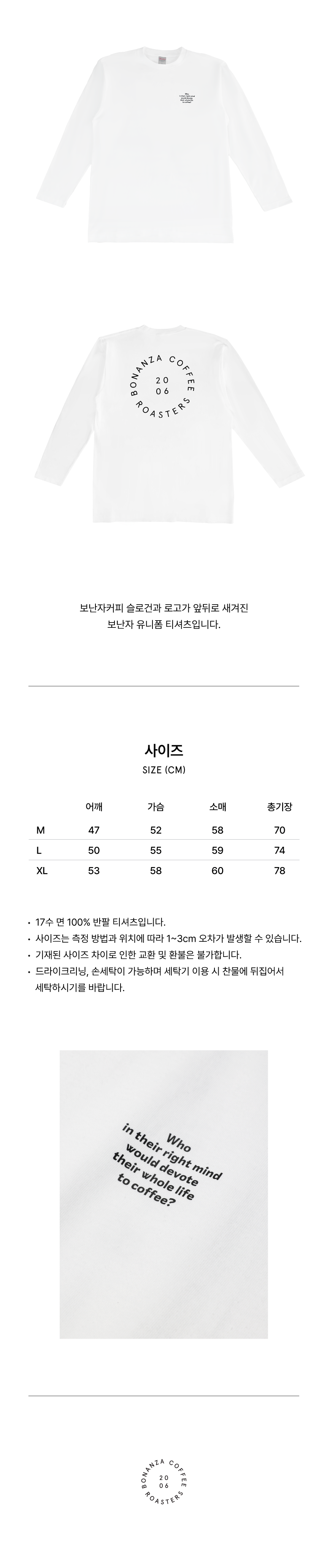보난자커피 슬로건과 로고가 앞뒤로 새겨진 보난자 유니폼 긴팔 티셔츠입니다.