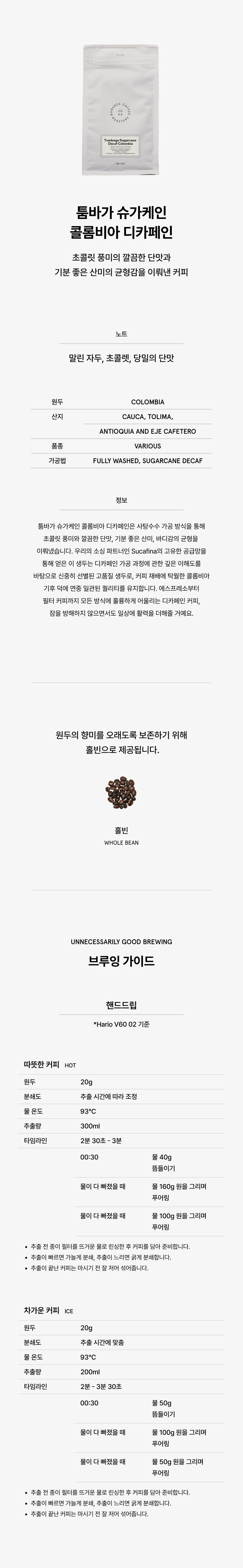 [도매/하고] 툼바가 슈가케인 콜롬비아 [디카페인] 1kg