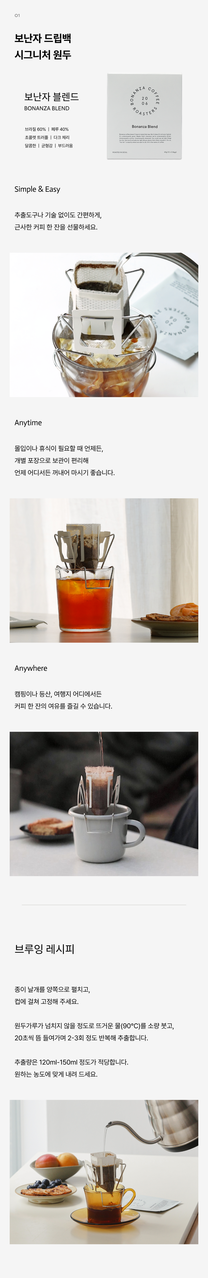 구성ㅣ보난자 드립백커피 5개입 (블렌드) + 티백커피 7개입 (블렌드)