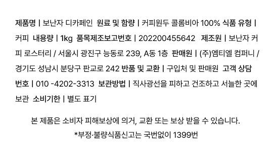 [도매] 포파얀 슈가케인 콜롬비아 [디카페인] 1kg
