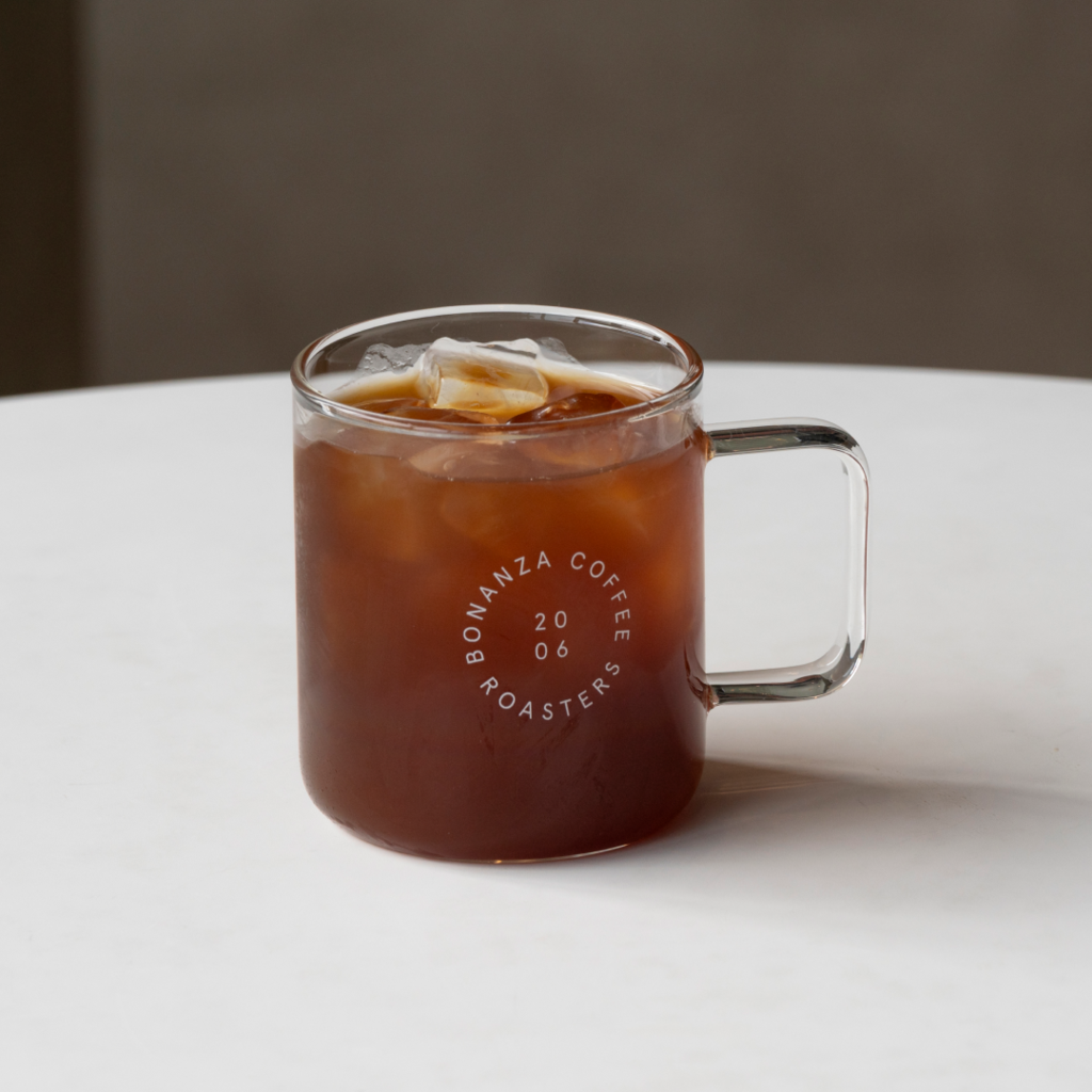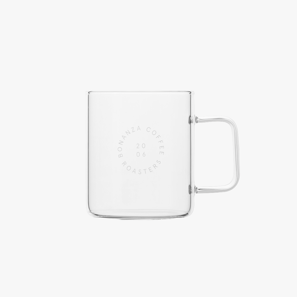 보난자커피 로고가 각인된 유리 머그컵입니다.
